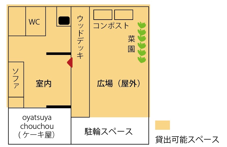 室内と屋外の広場両方を使えば約5店舗が出店可能です。